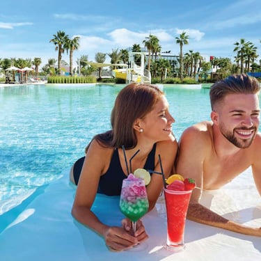 Water attractions including Malibu Beach, lazy river, wave pool and much more
